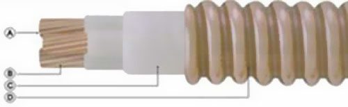 A.導體:絞合銅導體;B.絕緣:組成云母帶;C.填充:無機資料;D.銅套:縱包焊接并軋紋